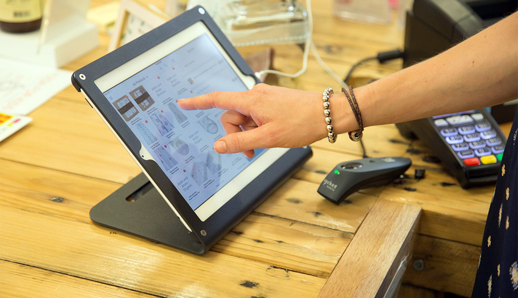 She uses the iPad to scan and find products and to show customers images, specs and videos from the website.