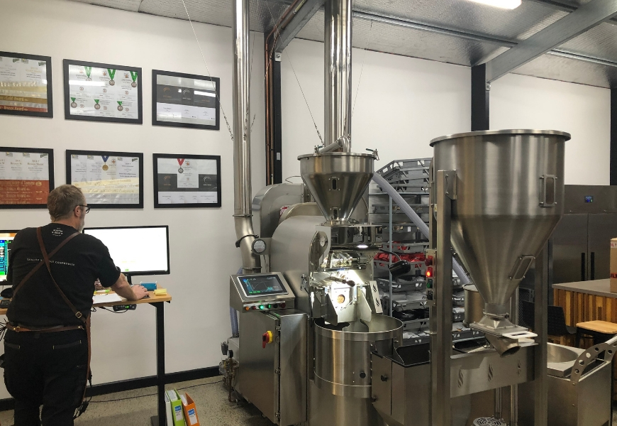 The silver, stainless steel coffee roaster would look at home in a micro-brewery but, instead, it produces what have been acknowledged as some of the best coffee blends in Australia.