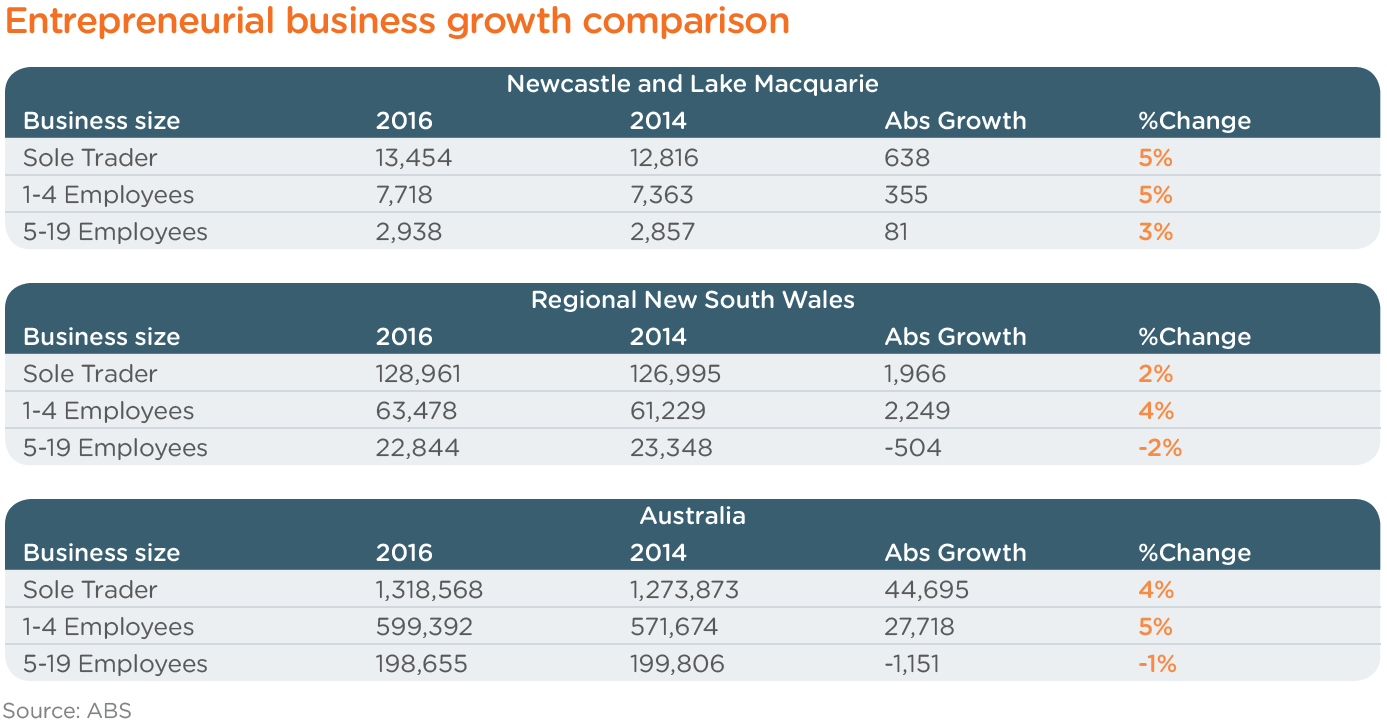 In the two years from 2014 to 2016, Newcastle outpaced net new business growth at a national, state and regional NSW level. This surge in businesses has applied to sole traders, micro businesses (employing 1–4 workers) and small businesses (employing 5–19 workers).