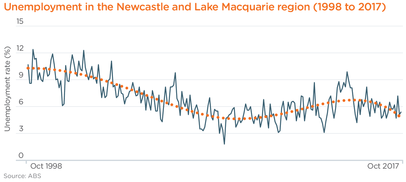 The city now has an unemployment rate of about 5.7 per cent, which is roughly in line with the national average. And Australia’s seventh largest city now stands out as a legitimate lifestyle location for jaded Sydneysiders looking for a more relaxed, less expensive place to live.