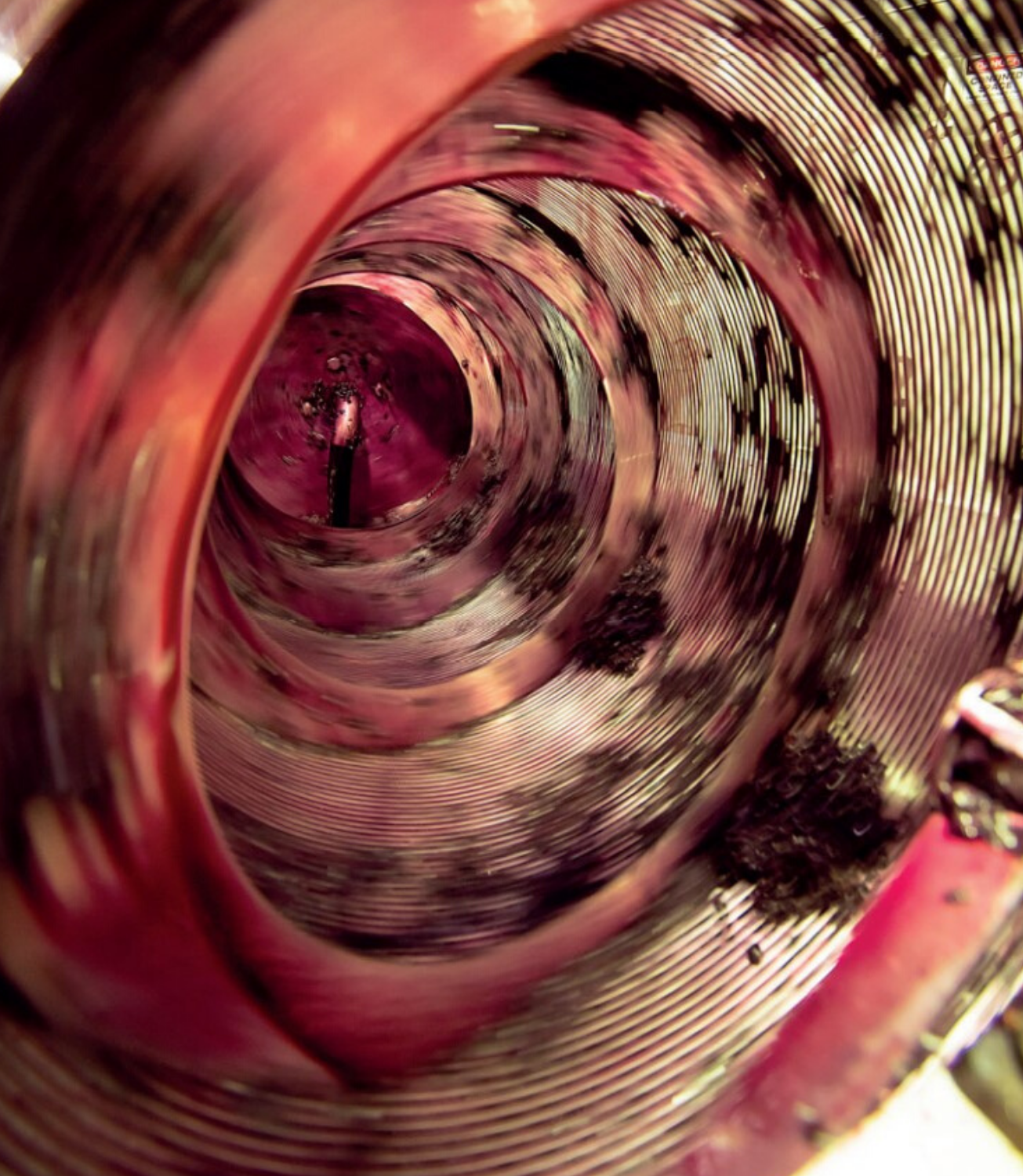 Third generation winemaker in the Barry family, Tom Barry works on pressing a micro-batch