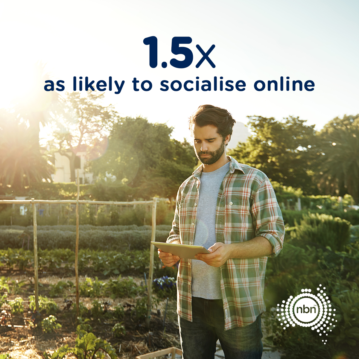 A rural nbn™ user is defined as an individual who has a home internet connection and lives in non-metropolitan suburb/postcode where nbn™ is at least 90% rolled out, this comparison has been made with individual who aren’t connected to the nbn™ network.