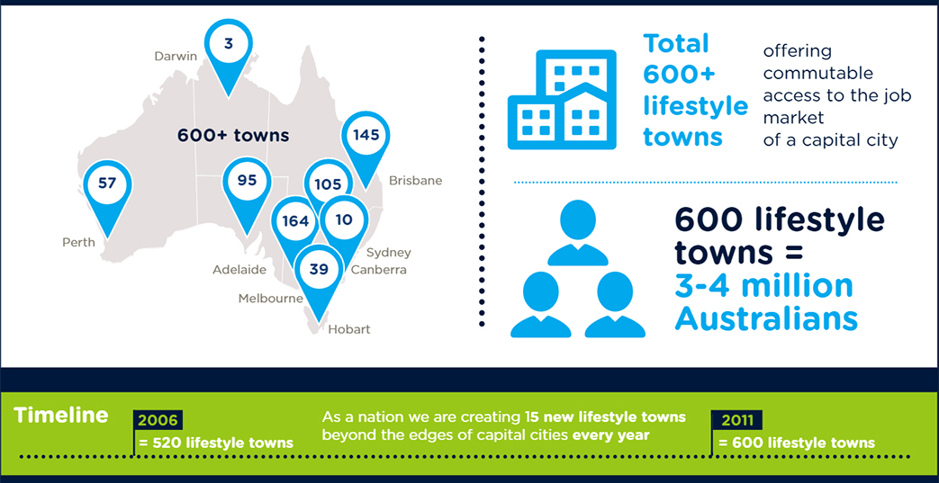 In Victoria, there are more than 160 lifestyle towns within Melbourne’s two-hour radius, over 140 in Queensland, 50 in W.A and 80 in S.A.