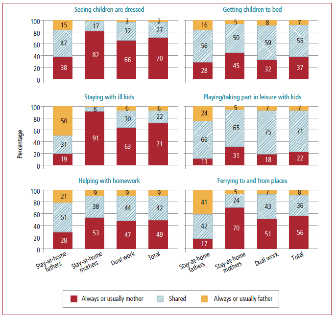 This is especially so for staying home with sick children and for ferrying children to and from places.