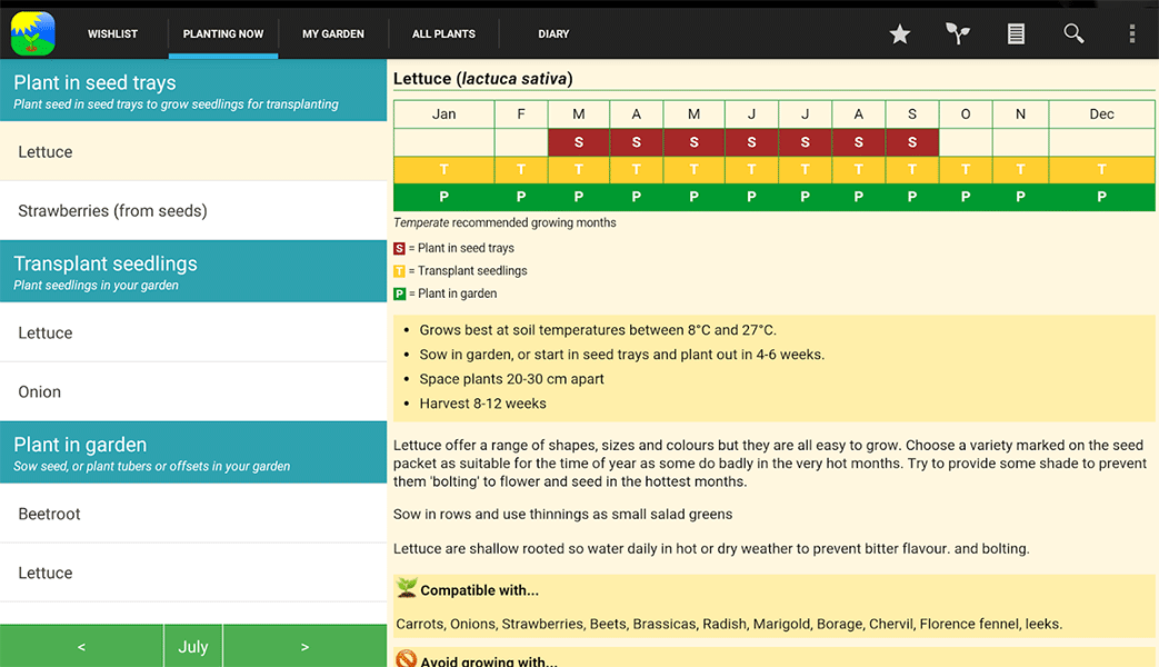 This app localises itself to your climate zone then gives you the options for what to plant during which season, sharing advice on methods and techniques.