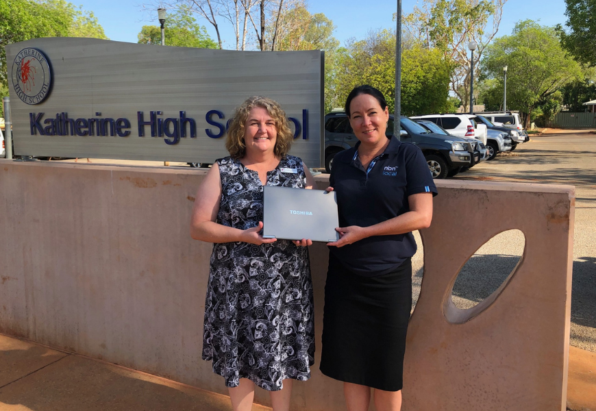 Sharon Oldfield, Principal at Katherine High School, with Tianee Dohnt, nbn™ Community Engagement Manager NT