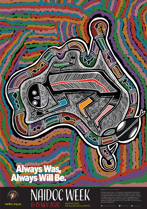 The 2020 National NAIDOC Poster, Shape of Land, by Tyrown Waigana.