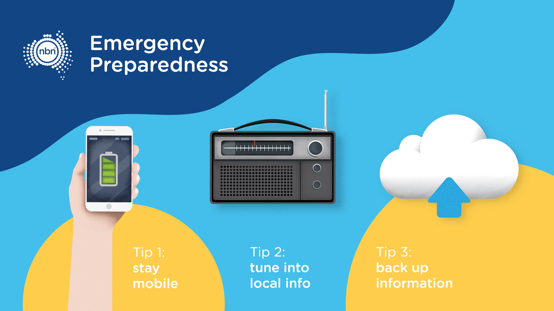 The nbn™ network is robust, but it is important that residents are aware that services over the nbn™ network are likely to be affected by a large-scale event or power outages.