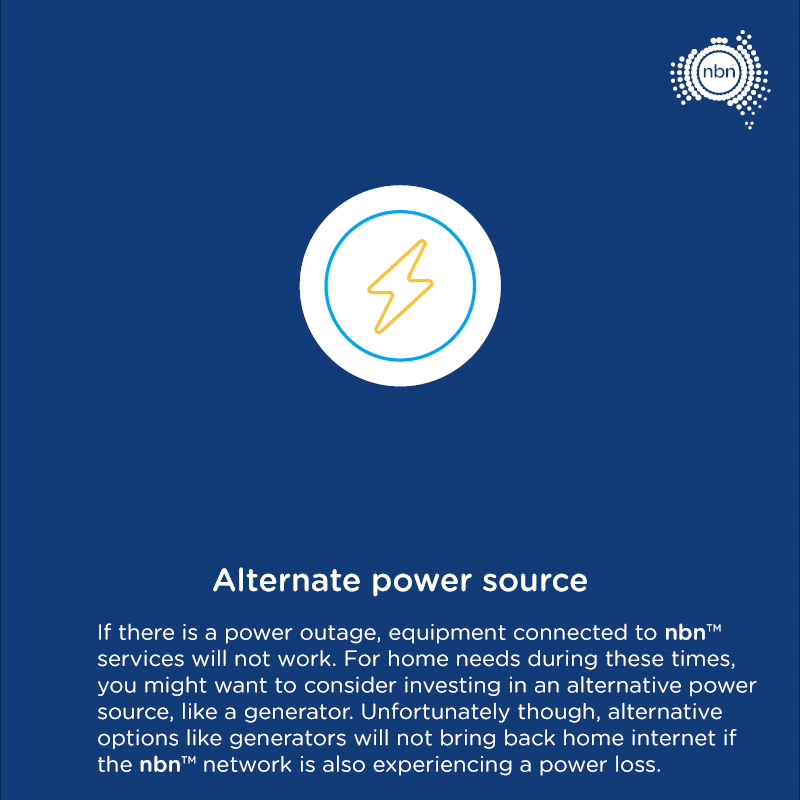 Any equipment connected to services over the nbn™ network will not work during a power outage.