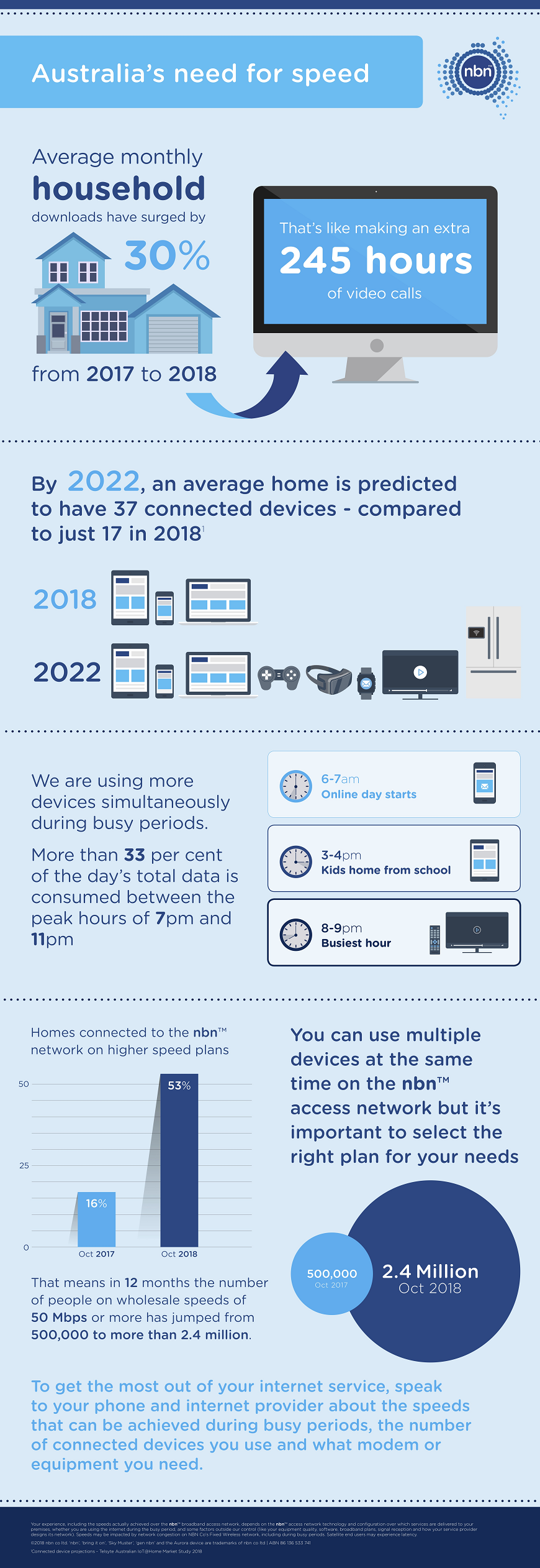 It’s easy to see the reason for this consumption increase: when people have higher speed plans they are better equipped to make use of the many connected devices – whether that be a tablet, TV or telephone – that Australian households regularly access.