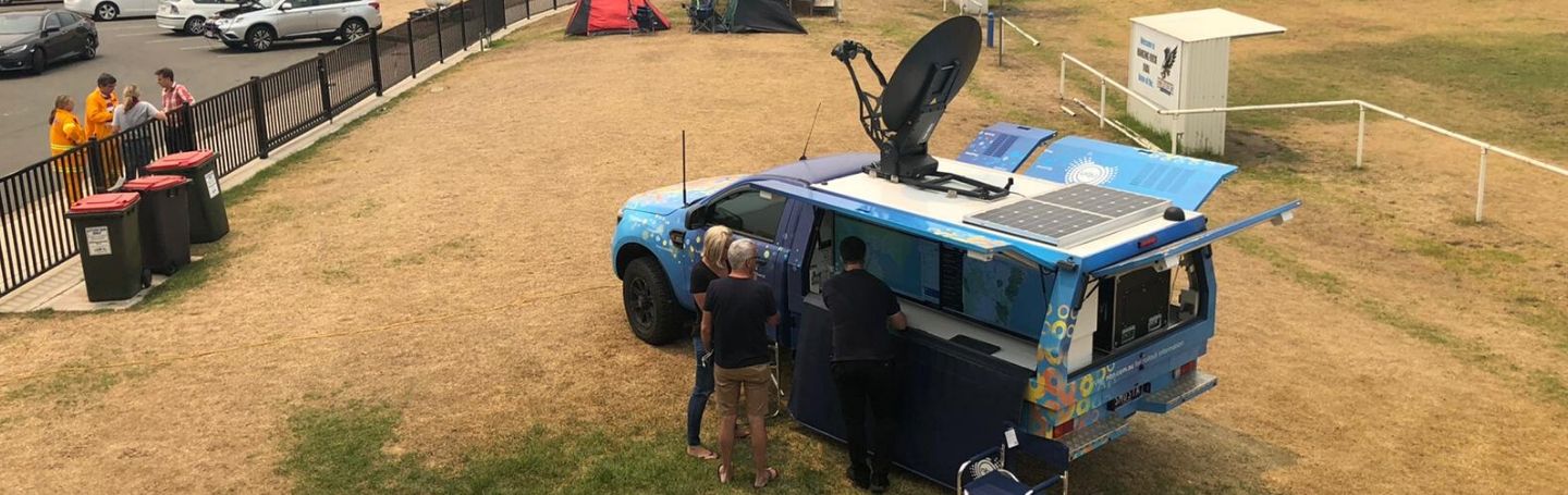 In addition to the nbn™ Sky Muster™ satellite dishes installed at 14 evacuation centres in NSW and Victoria, which are currently offering free Wi-Fi, an nbn™ Road Muster truck is available at the Batemans Bay Evacuation Centre providing free Wi-Fi and a mobile device charging station. A second Road Muster truck is now stationed at Malua Bay Surf Club, south of Batemans Bay.