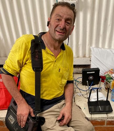 Sam (pictured) is one of the many installers who have been working to connect evacuation centres across multiple states. They have played a critical role in helping us deliver temporary internet access to these communities.