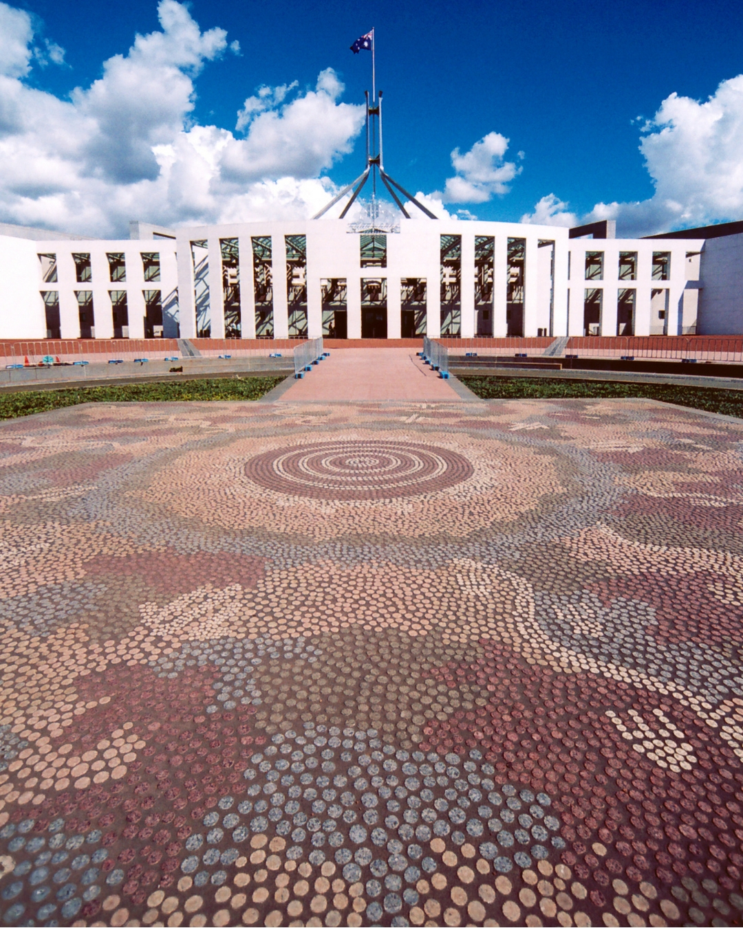 The forecourt features a mosaic measuring 196-square-metres by First Peoples' artist Michael Nelson Jagamara
