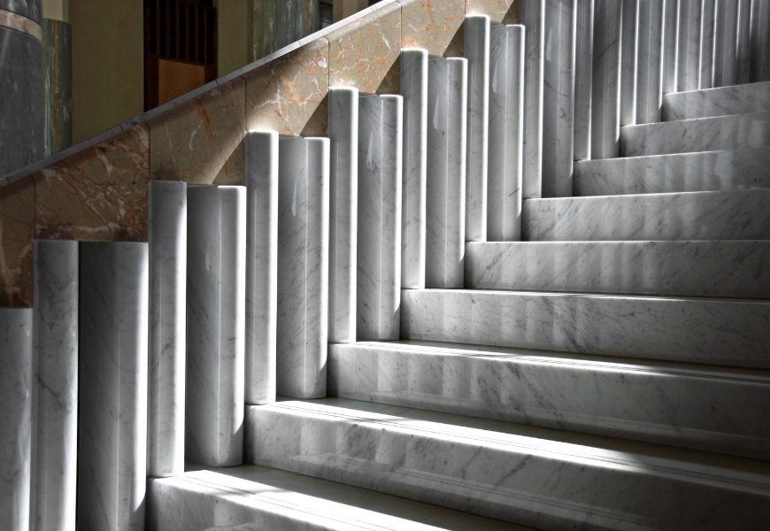 One of two marble staircases in the Marble Foyer at Parliament House, Canberra