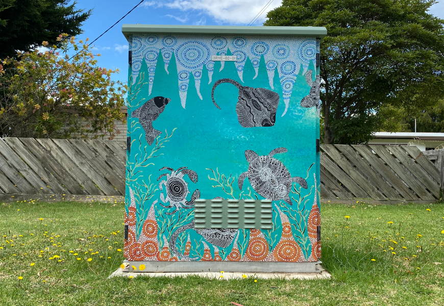 In collaboration with the Mornington Peninsula Shire, 16 nbn™ nodes were recently ‘wrapped’ in unique designs created by local First Peoples artists.