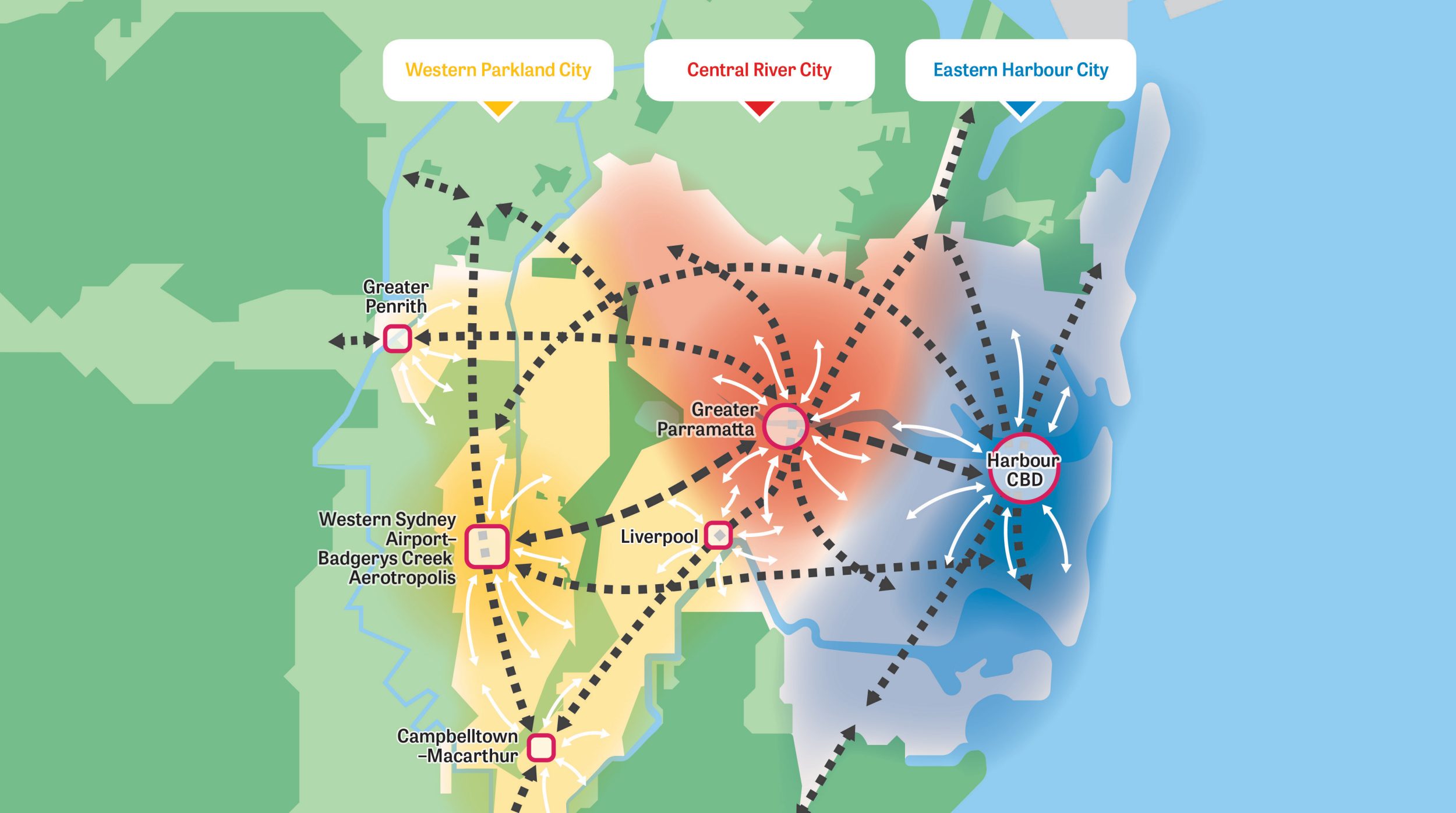 To do this, the Greater Sydney Commission has developed plans for a Metropolis of Three Cities where most residents live within 30 minutes of their jobs, education and health facilities, services and great recreational places, and dining and entertainment precincts.