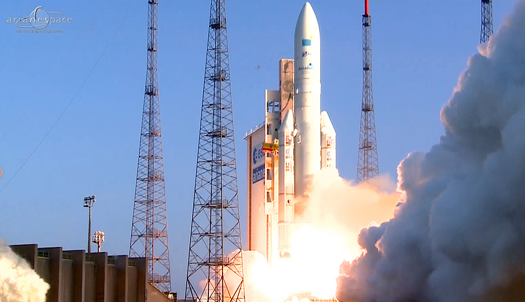 Pictured: the rocket carrying the first nbn™ Sky Muster™ Satellite blasting off into space.