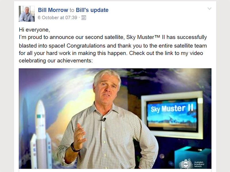 Last week's launch of nbn's second satellite provided a clear example of the collaborative possibilities provided by Workplace by Facebook which, launching officially today, has been actively used within nbn since April 2016.