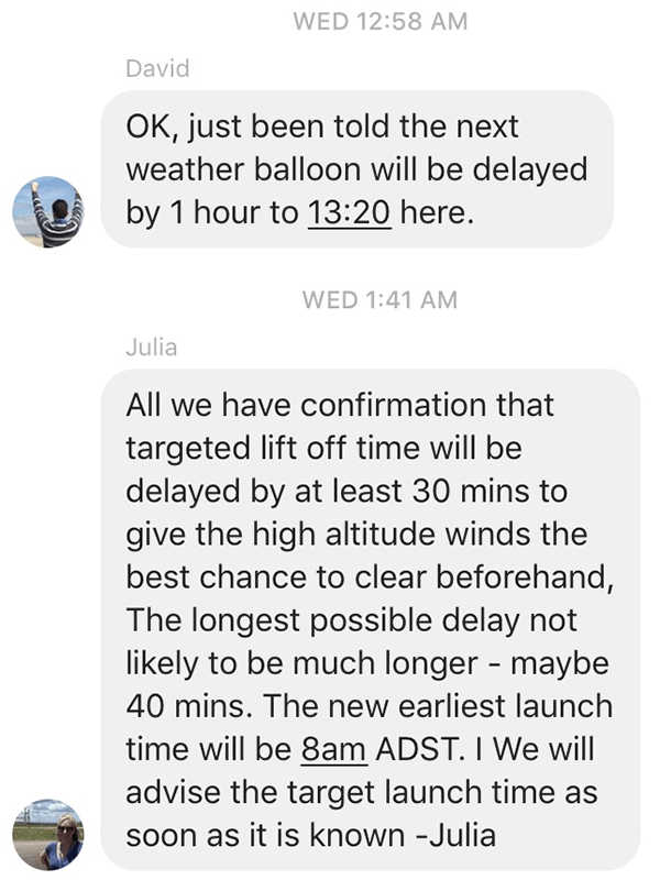 The team kept each other’s spirits high and we watched and waited for the 'weather balloon tests' to come in.