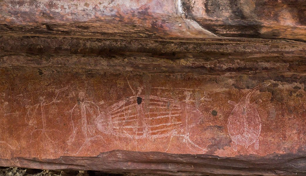Relatively young in comparison are the ‘first contact’ paintings that show tall ships bringing European settlers to the shore. You’ll find them at Nanguluwur.