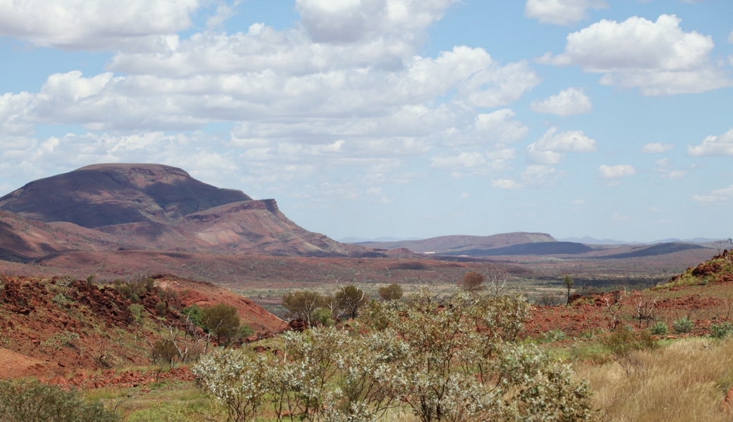 After an 80-kilometre drive through a landscape of distant rock formations and purple-red cliffs, we arrive in Tom Price.