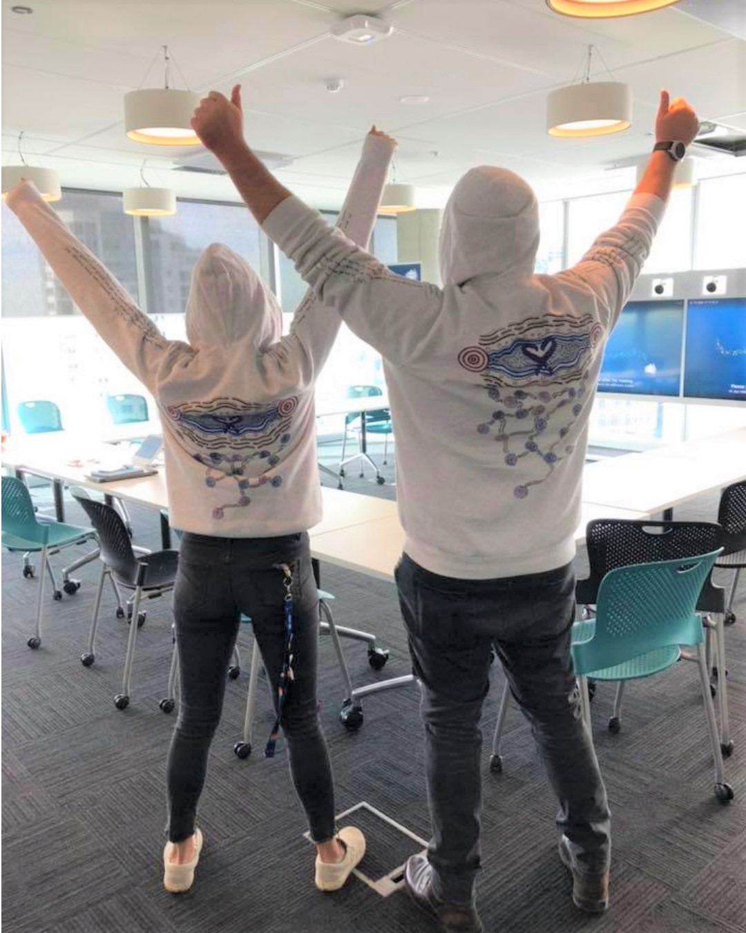 Kindness, the back of the hoodie, represents water flowing through the land to the seas. Iteka, the artist responsible for the design, says, “As a drop in the water creates a ripple so too do acts of kindness, spreading from one person to the next. With acts of kindness we can change the world.” How good is that. The front is called Unity and shows that “water flows through our country connecting us to each other and our land.” And, after all, what business are we in if not the business of connection.