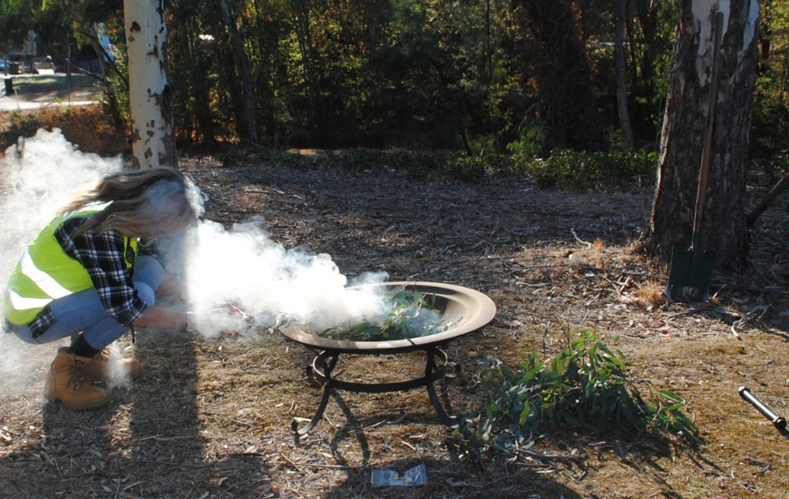 NBN Co’s Regional Deployment Manager, Cory Keighery, cleanses herself as part of the traditional smoking ceremony