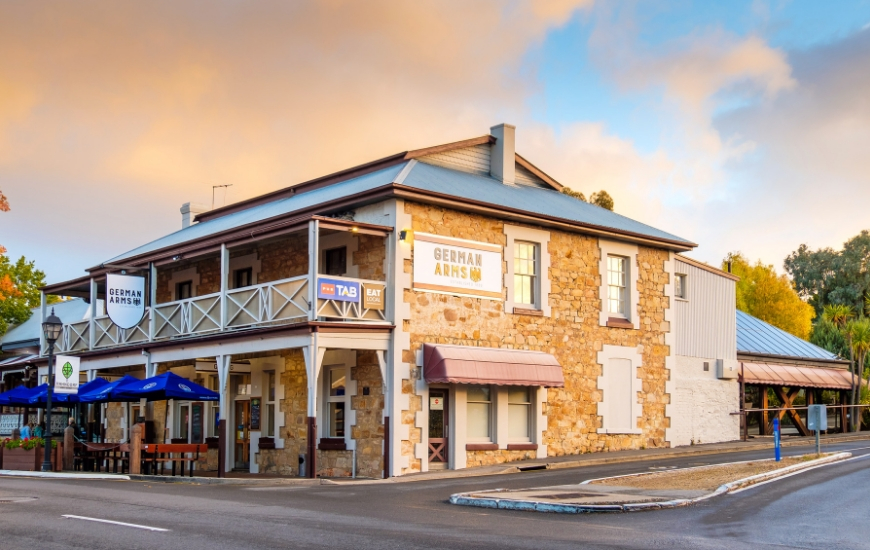 One longstanding business in town is the German Arms Hotel on Main Street. Opening in 1839 – the same year the town was settled – the German Arms serves the largest variety of imported German and Bavarian beer in the state, as well as local brews. Old-fashioned hearty meals range from traditional German to Australian pub-style.