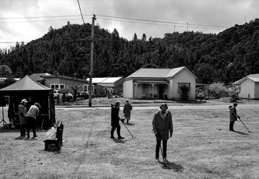 Participatory 'prospecting' sound artwork in Queenstown's Passion Park. Photo by Shane Viper, courtesy of The Unconformity.