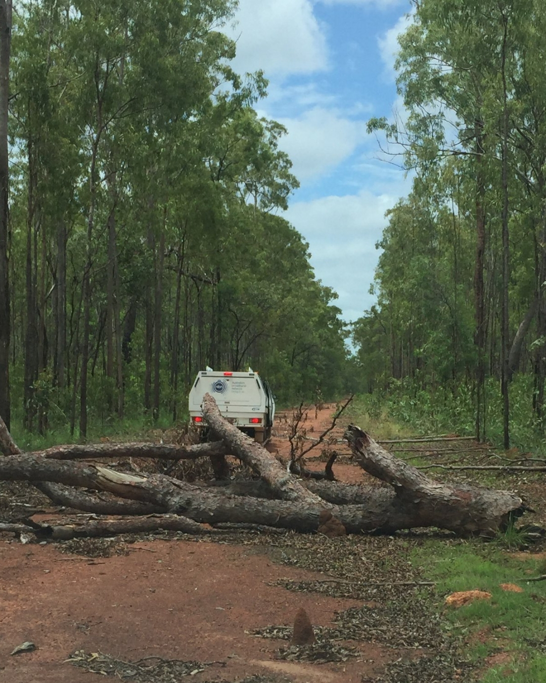 “It was passed back to the NOC to find someone to clear the path but, as the site is located within the boundaries of land held by Traditional Owners, the environment and tracks remain largely untouched. So we had to head back and saw through the trees then use the winch to remove them from the road.”
