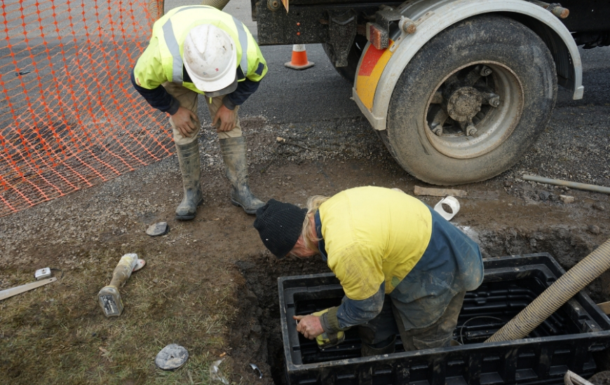 “We have to use a high-pressure hose to blast the dirt away and make sure we don’t hit any assets underground before bringing in a rock breaker.”
