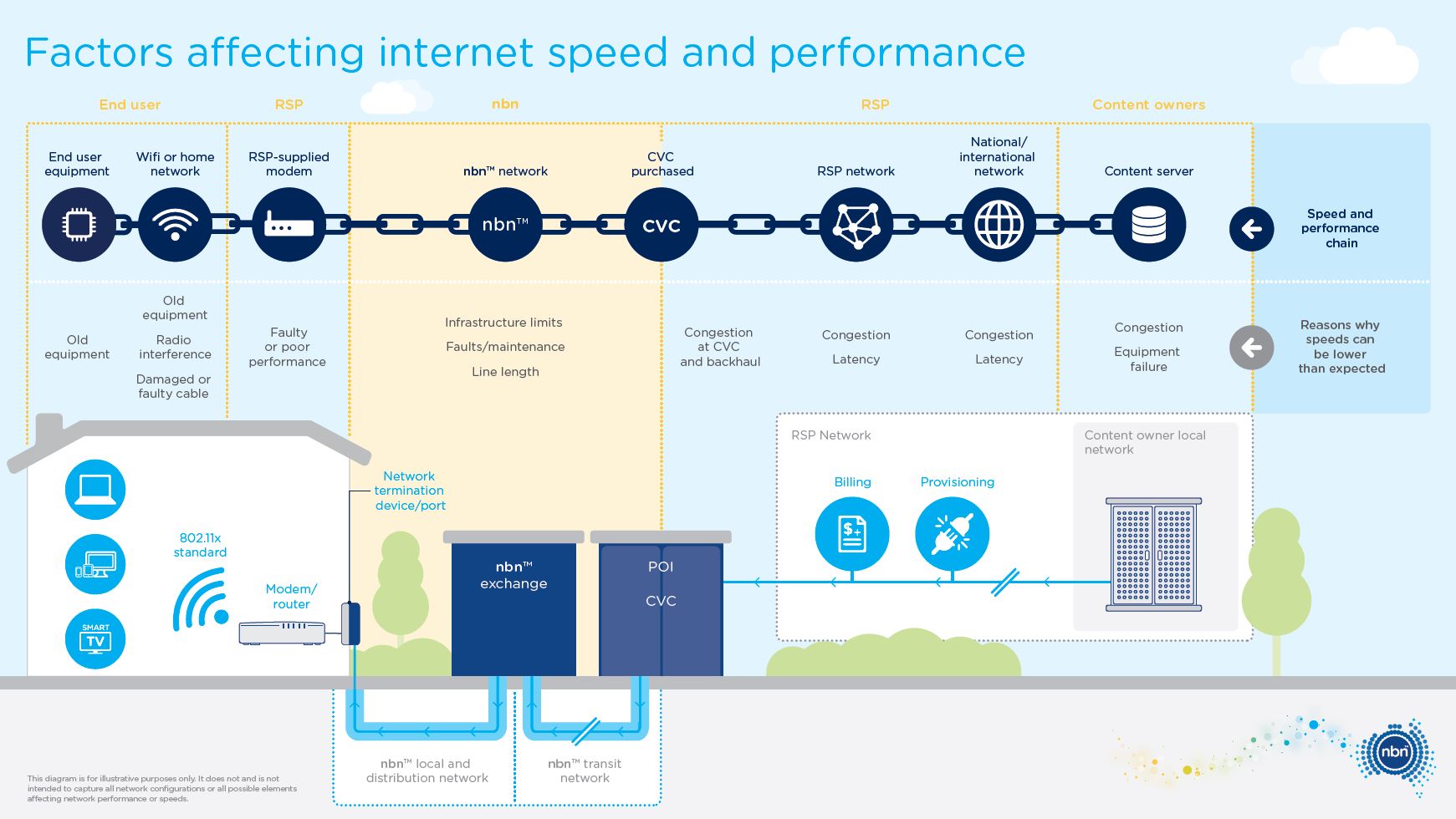 Examples are the quality of the modem in the home, how much bandwidth the RSP has purchased from nbn, the size of their network that attaches to our POI, or even how much bandwidth they've purchased in overseas cables to access content from abroad.