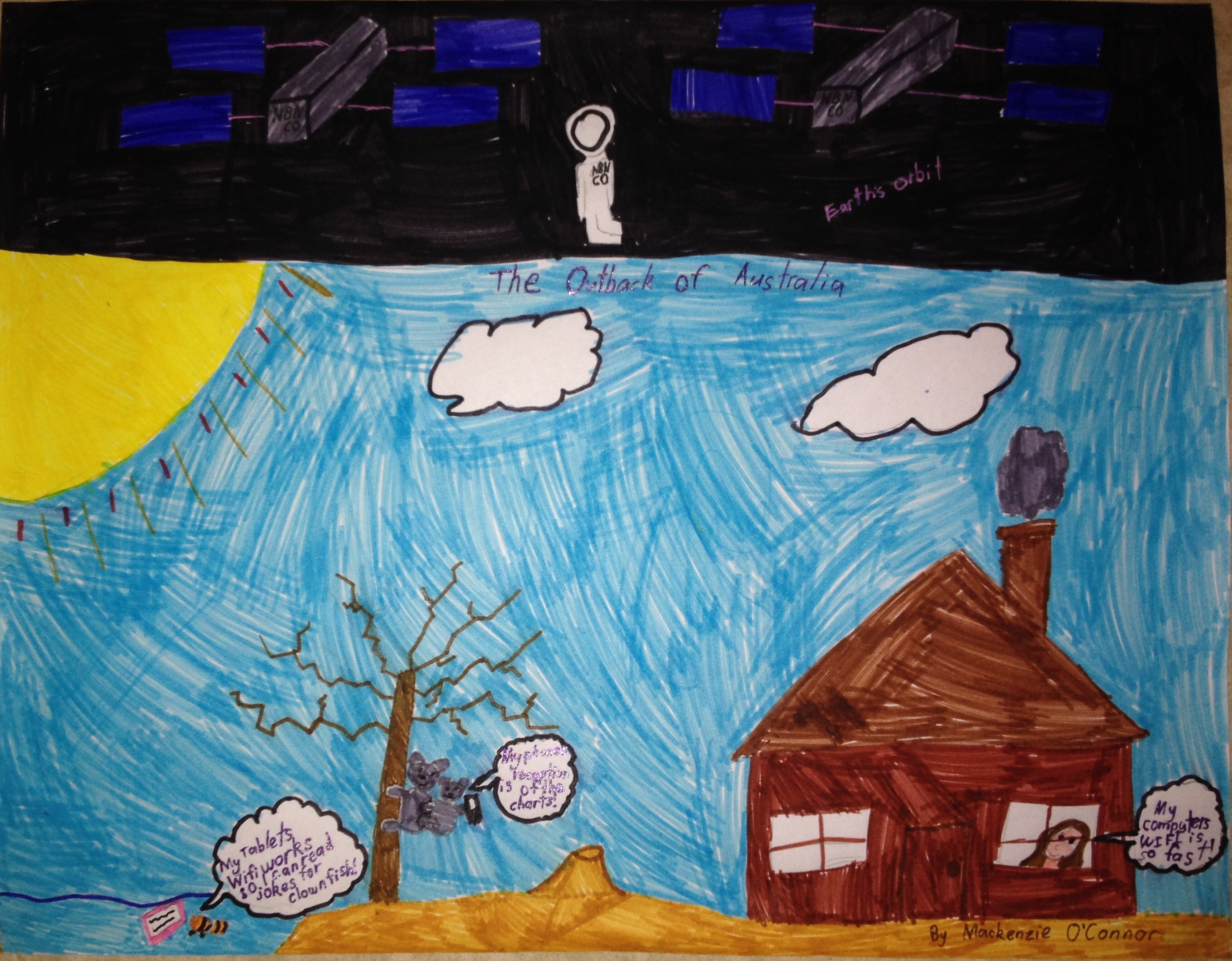 We asked school children aged 5 – 12 years to provide an original painting or drawing showing ‘how the nbn™ network will make Australia a better country’.
