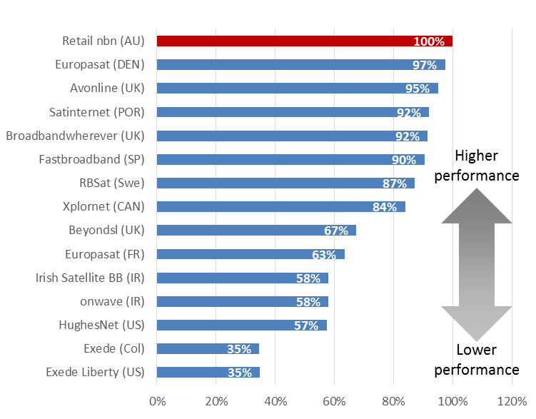 “Sky Muster’s excellent technical performance combined with strong retail affordability makes nbn’s satellite broadband service a world leader,” Ovum says in the report (see chart).
