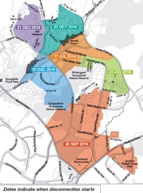 The first of several areas in Gungahlin will be switched off from the existing copper network from 17 July 2014 with further areas to follow later in the year.