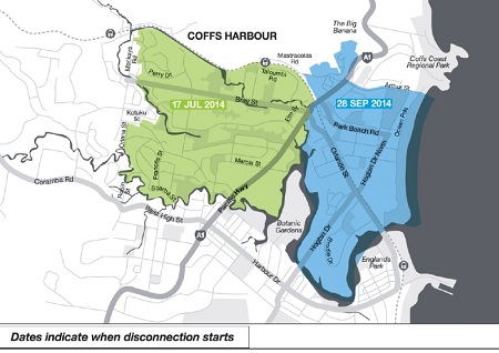 The first of several areas in Coffs Harbour will be switched off from the existing copper network from 17 July 2014, with further areas to follow later in the year.