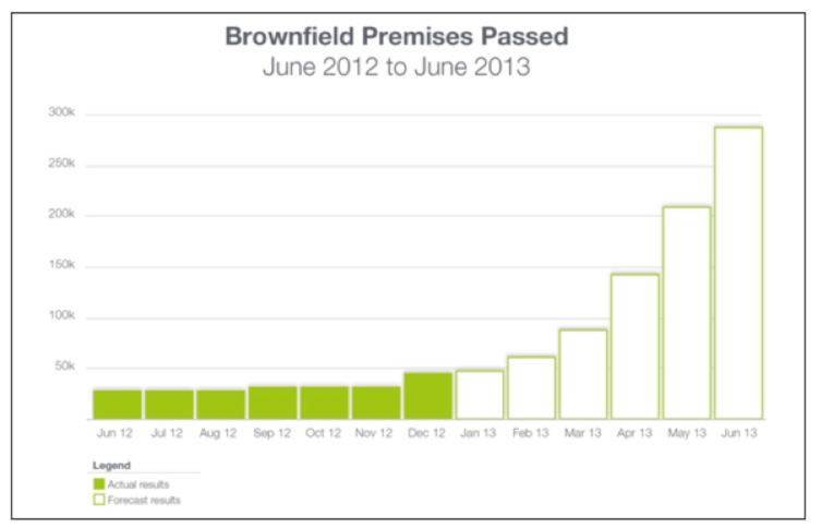 The company‟s Corporate Plan has set a target of 286,000 Brownfields premises passed and 44,000 Brownfields premises activated by the end of June 2013.