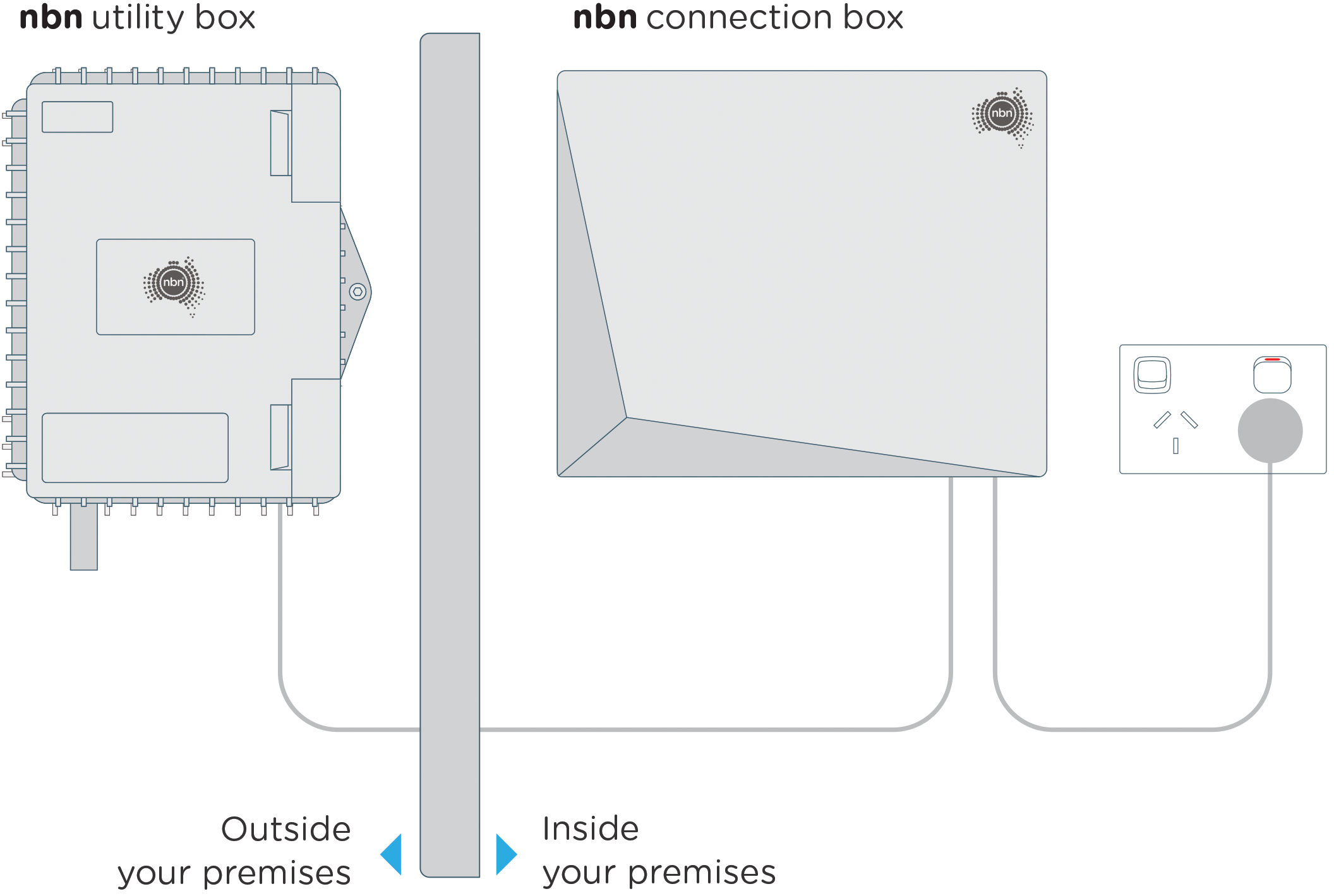 - The connection box (also known as the Network Termination Device or NTD) on the inside or outside of premises